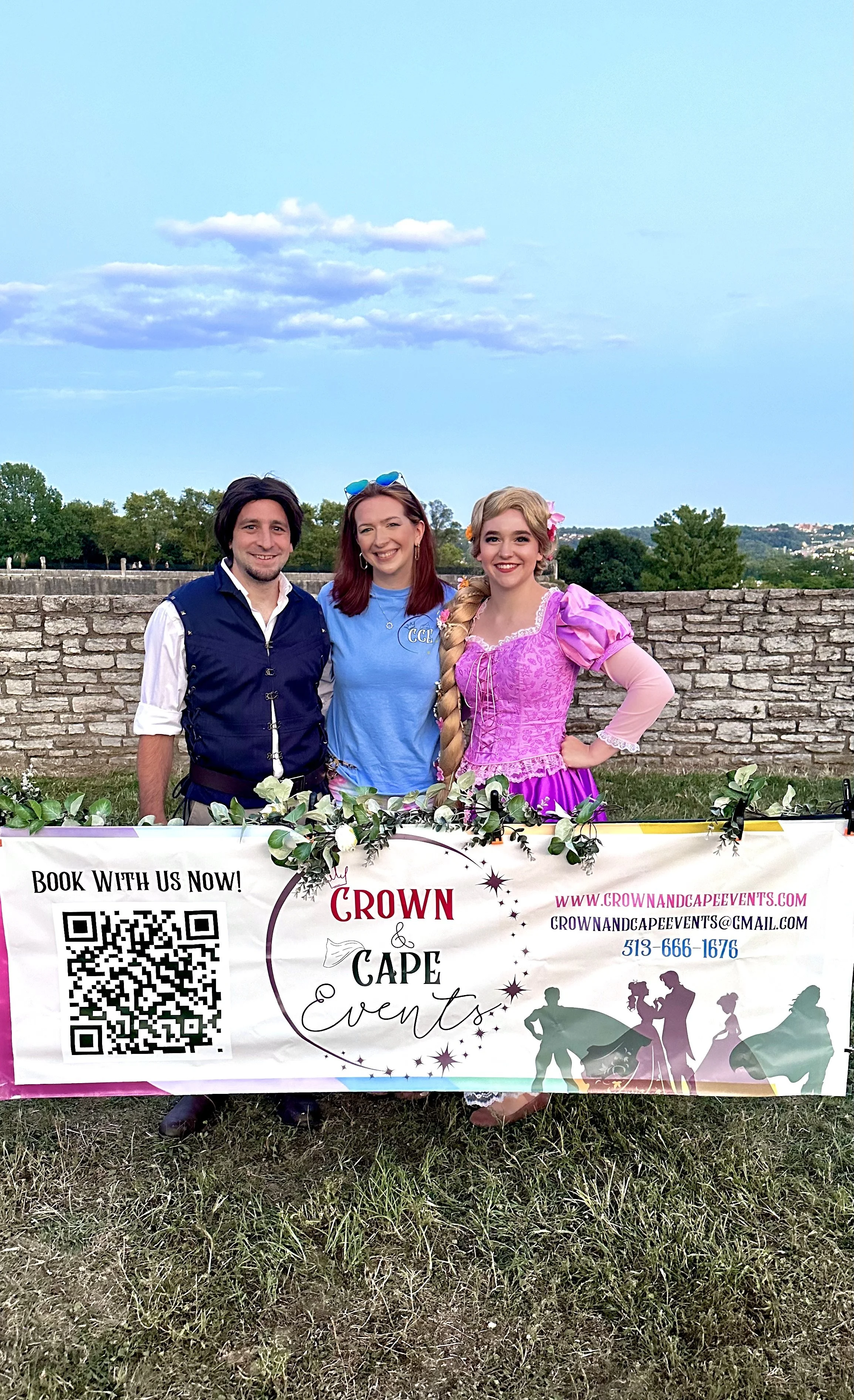 Oh RIGHT! I almost forgot, she also owns her own small business, Crown & Cape Events! She stepped into the role at this character event company after performing for them for 2 years. Getting to spend every day trying to find new ways to bring magic and joy into the lives of people but especially children, is truly her biggest goal in life. Finding a way to do that through performance and Disney characters is a dream come true!